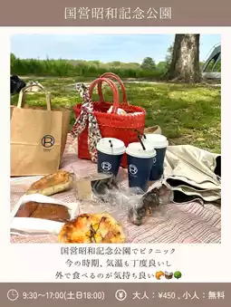 Nishi-Tachikawa Station is closer to Hanabata and other places, but there are more shops in Tachikawa, so it was nice to buy bread and coffee in Tachikawa and have a picnic 🧺🥤 🌳