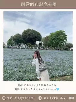 ④ Visit the nemophila fields at Showa Memorial Park 🩵