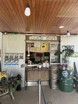 The interior has a camping-themed atmosphere, with seating arranged with tables and chairs like those used by campers, and even some cute seating, like indoor tents🏕💓