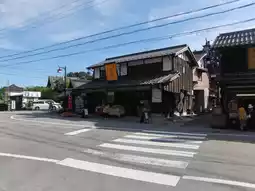 "Emon Street" in Taga Town, Shiga Prefecture is a historic street that has flourished since ancient times as a temple town of Taga Taisha Shrine. The road is about 500m long and is lined with old-fashioned townhouses, long-established Japanese sweet shops, souvenir shops, and charming teahouses, creating a nostalgic and relaxing atmosphere. As the name suggests, it is a walking spot surrounded by a warm atmosphere that makes you feel like "good fortune comes to a smiling gate."