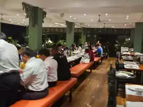 🏖Ambiance/Facilities - A grand Spanish-Filipino casa with high ceilings, wooden details, and a vibrant, heritage charm 🏠✨. The lively atmosphere and sweeping views of Taal Lake 🌅 make it a beautiful place to dine.