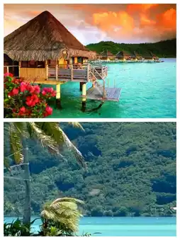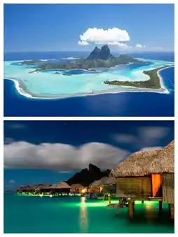 🌺1. **Bora Bora:** Known as the jewel of the South Pacific, Bora Bora is famous for its turquoise lagoons, soft white sand beaches, and lush volcanic peaks. Here, you can enjoy snorkeling and scuba diving in the shadow of Mount Otemanu, dancing with turtles, sharks, and tropical fish.
