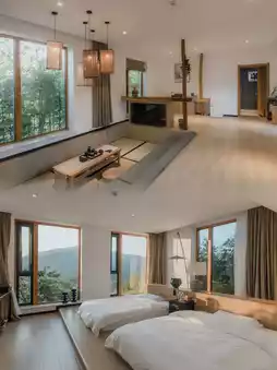 The interior design of Ju, Ming Chunjian, Shan Geng You, Bu Jue Xiao, Guan Ju and Lian Jiu Lin continues the architectural elements of the ancient village and is built with stone walls and tree trunks, preserving the original ecological rural ancient village atmosphere to the greatest extent.