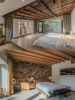 - A variety of courtyard room types: There are 10 courtyards and 34 guest rooms, with 2-bedroom, 3-bedroom, 5-bedroom, and 6-bedroom options available. The maximum capacity is 80 people. Each courtyard is named after a line of ancient poetry related to birds, creating a poetic atmosphere. The interior design incorporates elements of ancient village architecture, such as stone walls and tree trunks, to create a natural rural village atmosphere. The rooms have private terraces, large spaces, and excellent soundproofing.