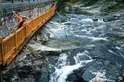 At dawn, take a different path to climb Mount Tai — Taohuayu. The stone steps wind along, accompanied by the sound of the stream, with fewer crowds and more tranquility. Halfway up the mountain, you encounter Caishixi, where the water reflects colorful stone patterns, like a slowly unfurling natural ink painting.