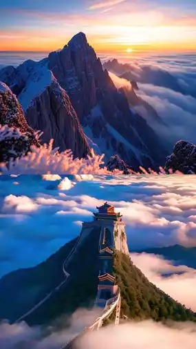 The Encounter of Rime and Sunrise in Late Autumn on Mount Tai