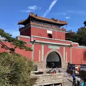 also named Heavenly Gate Pass, is located at the end of Eighteen Twistings, at 1460 meters above sea level, built by Zhang Zhichun, an abbot in 1264, decorated by red walls and yellow glazed tiles on the roof and stone arched doorway. The cableway station is 10min away.
