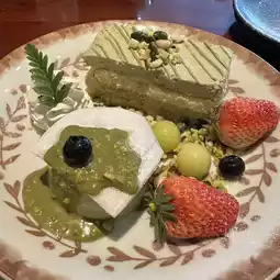 💟Recommended💟The plating is exquisite, the pistachio pudding is full of rich pistachio flavor and very smooth👍🏻😊 The pistachio cake dessert has just the right sweetness, not too cloying!