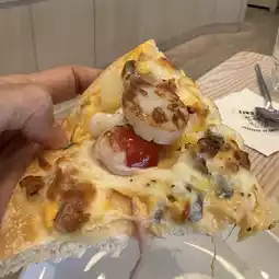 💟 Recommended 💟 The handmade pizza is generously topped 😬 with fresh, bouncy scallops, squid 🦑, and pineapple 🍍 combined with Thousand Island dressing, offering a rich and layered taste and texture 👍🏻