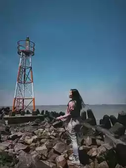 This is the "end of the river and the head of the sea", which is just over an hour away from the city. There is the Lingshui lighthouse here. I feel like I have photographed my husband like someone else's, and I want to create a stylish look.
