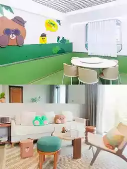 ✅Customized LINE FRIENDS themed bedding allows children to fall asleep in the company of their cartoon friends. Some rooms have their own large-screen projection screen, so you can enjoy a family movie night at night, and some have their own terrace/balcony, which is suitable for family sitting and chatting.