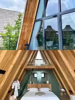 High wooden structure + 270° panoramic floor-to-ceiling windows, duplex layout allows adults and children to have their own space. The upper children's area thoughtfully includes a tent, rocking horse, and picture books, with a hidden lookout hole for kids to become jungle detectives. The terrace bathtub faces the forest, making the stay incredibly beautiful.