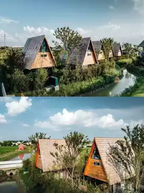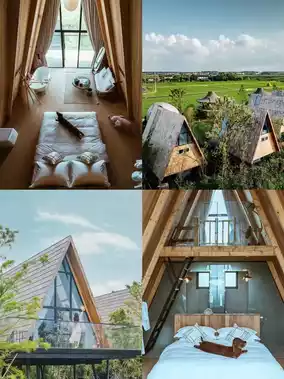 The 8 tree houses are very characteristic: 5 classic triangular houses, 2 180° two-way view lotus leaf houses facing the countryside, and 1 futuristic seed house, all prefabricated buildings, will not destroy the original ecology, living in like close contact with nature