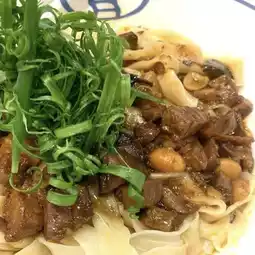 Oil splash spicy biang biang noodles * You can choose large, medium and small spicy, the noodles are wide, bouncy, with pork, peanuts, spring onions; the pork is very seasoned, good!