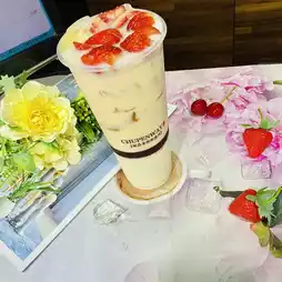 The drink tastes just like its name, full of strawberries, and there is daifuku mochi inside. Putting strawberry daifuku into milk tea is really innovative💯💯💯