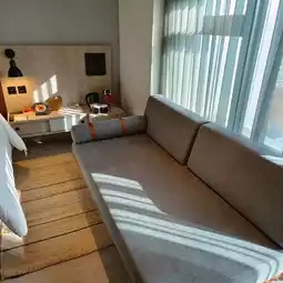 The bed is not big but moderately soft and hard, and it is quite comfortable to sleep on.