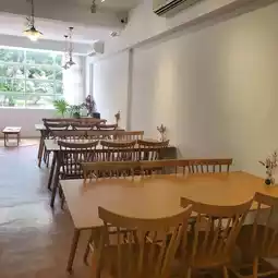 The eat-in area is on the second floor, and the interior is beautiful and photogenic. Prices are a little on the steep side, so sharing a cake might be a good idea.