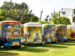 It seems like a place where an abandoned beer factory was renovated through urban regeneration to exhibit art pieces and let citizens use it as a park. It seems like a good place to stop by, take a walk, and take pictures.