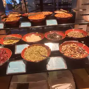 - Grilled meats (beef, pork, salmon, lamb, chicken) are available on order