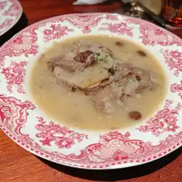 I ordered a special set menu for one person. It included an appetizer (sour cream smoked salmon with baguette and pickled cucumber and pork jelly with soda crackers), a seasonal salad, a classic French onion soup, a main course of braised ox tongue, and Grandma's homemade dessert. 🥖🥘🫔🧅🧄🫒🍋🫕🥂