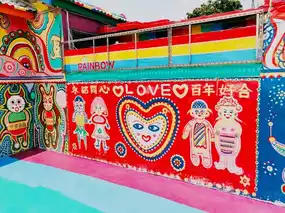 Located in Chun'an Village, Nantun District, Taichung City, Rainbow Village🌈 is also known as Rainbow Village. The story is about an elderly Rainbow Grandpa, Mr. Huang Yongfu, who has lived here for many years. In order to leave some memories, he painted the colors on the exterior walls of nostalgic buildings one by one, and painted a rainbow fairy tale paradise. He insisted on his belief and used unrestrained artistic creation to complete the unique murals of the whole village🏞️, thus achieving the emergence of "Rainbow Village"✨. The composition of Rainbow Grandpa is ingenious, and the content is full of humanistic care, lively and interesting, and kind to others. It amazes people everywhere, so it also attracts many people to take pictures🤳 and check in, and thus became famous👍🏻
