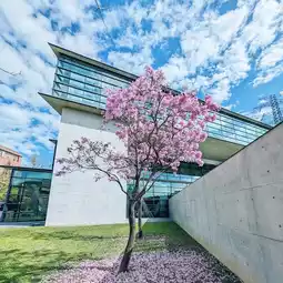 The Asia University Contemporary Art Museum is an art palace designed by the world-renowned Japanese architect Tadao Ando. It is located on the campus of Asia University in Wufeng District, Taichung City. It is Tadao Ando's first building in Taiwan and his first campus art museum building in the world. The museum has a unique architectural style, using plain concrete and curtain walls with equilateral triangular design elements to create a staggered spatial effect.