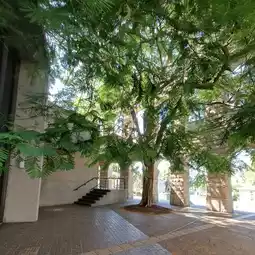 Located at No. 500, Liufeng Road, Wufeng District, Taichung City, the exterior wall is an imitation of the ancient Roman Colosseum, constructed of off-white granite, which is majestic, and the sunlight shining into the interior from the two-story arch is very beautiful. You can also see a tall and lush tree and many green plants in the internal passage. The hall is an indoor sports field and dance studio, etc. This is a friendly campus, and people outside the school can also go there to take pictures and exercise.
