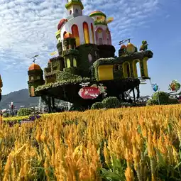 Taichung International Flower Carpet Festival has created themes such as floating flower castle, earth giant, craft goddess and other landscapes