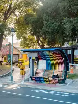 in June 65. Anyone who is a photography lover must come here. You can take pictures from every angle. Even the bus signs are rainbow-colored. It's so cute and beautiful