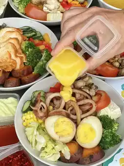 This is a salad specialist with 15 different main meals, more than 11 handmade sauces to choose from, and 8-10 dishes to choose from, fresh and healthy