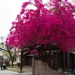 The bougainvillea in Wu Tian’s front yard is in full bloom, and many people come here to see it.