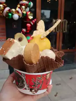 Be prepared to queue for the ice cream, which offers about 30 different flavors to choose from, and you can even add toppings!