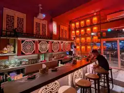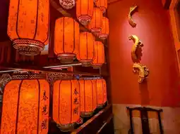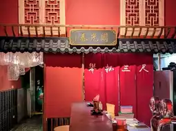 #Chunguangge is a very mysterious restaurant and pub next to #Taichung Le Méridien Taipei. It has a strong Chinese palace and temple style facade, with two bronze lions standing on the left and right, palace lanterns hanging above, and big red curtains hanging on the side. There is "dragon" written on one side and "spring appears" on the other. If you didn't tell me, you would really think it was some prince's palace or temple!