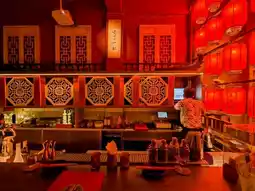 The theme of the first floor is "Taiwanese Temple Culture", with the bright colors of red walls and yellow tiles, highlighting faith and divine power. Familiar palace and temple elements can be seen everywhere, including red lanterns, lattice windows, ringing bells, and divination blocks. Even the wine is specially prepared.