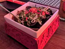 Chunguangge uses the concept of the 24 solar terms in its dishes. We ordered green lemon Lixia fried chicken, Qinglong Lixia pork cheek, Feiniu mixed noodles, and thirteen-spice preserved eggs, and the taste was pretty good. As for cocktails, a lot of fruits are mixed into the wine, which gives it a very rich aroma.