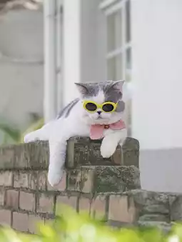 In front of the store, there was a super cute kitty with sunglasses and a ribbon🐈🕶️🎀