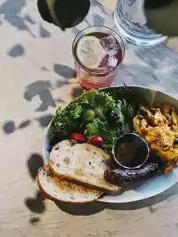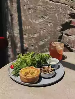 The menu focuses on light meals and desserts. This time, we tried the savory pie, brunch, and pudding. We loved everything, especially the pudding served in vintage porcelain teacups, which perfectly matched the café's ambiance. The pudding was soft, creamy, and had a rich egg flavor, with caramel at the bottom adding a slight bitterness without being overly sweet—absolutely delightful! The breakfast plate with sourdough bread was also a favorite. The only downside was the menu listed 'Italian sausage,' which we expected to be like Salami or German sausage, but it tasted more like Chinese sausage. Despite visiting on a weekend, the place wasn't crowded, and the spacious environment made for a comfortable dining experience. Both indoor and outdoor seating are highly recommended.
