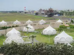 In July and August of summer, Gaomei Wetland in Taichung will show its most lively and beautiful side, with charming sunset afterglow, endless sea views and large windmills rotating day and night. [Cicada Says: The Sunset] is located next to this attraction praised by international media as "a must-see attraction in life". It has a rich wetland ecology. Finally, I am here to stay in this lovely "Lotus Water Drop Tent". I am super looking forward to it!