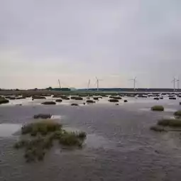 Later, we took a bus to Gaomei Wetlands, hoping to catch the famous sunset. Unfortunately, luck wasn’t on our side that day. The sky stayed cloudy, and the view was more about the endless rows of windmills than golden horizons. Still, the landscape had a minimalist beauty, with vast stretches of wetland dotted by the turning turbines.