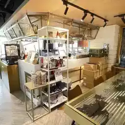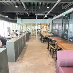 There are actually two cafes on the 36th floor, but this one is the most obvious. Because there is a very eye-catching automatic door in the shape of a safe lock at the door, there is a silver round button below the upper right mural to open the door.