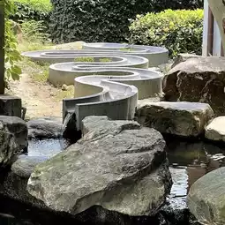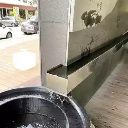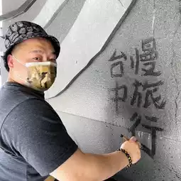 There is a water channel in the Taichung Literature Museum, with several brushes placed there. People can dip brushes in water and write on the stone wall, which is quite interesting.