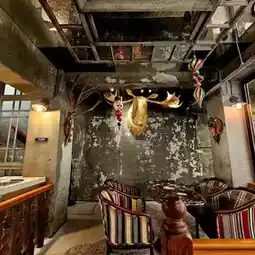 It was just after Halloween, so the interior was decorated for the Christmas season.
