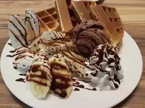 Hashipin's Waffles are all freshly made, the outer layer is super crispy and has a fluffy texture when you bite it. It's great! garnished with fresh fruit, you can eat the natural sweetness in every bite, so fresh that you can't stop. ✨