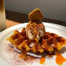 The croissant has a crispy outer layer of sea salt caramel, and a large ball of ice cream is placed on it. The sea salt caramel is sweet but not greasy, and it is so delicious that you can't stop eating it. 🍰🥐