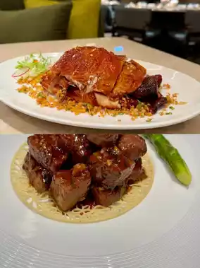 The food at Ming Chuan Building is delicious. I recommend the crispy chicken. The crispy skin and tender meat with mustard pepper are unforgettable, but you may need to order this dish in advance. The only downside is that the food is served quickly, which makes the dining experience a bit rushed.