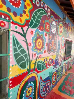 Every corner bursts with bright colors, whimsical characters, and playful patterns, making it a paradise for photographers and art lovers. From cheerful animals to heartwarming messages, the paintings reflect Grandpa’s hope, happiness, and creativity. Strolling through this mini wonderland feels like walking through a dream, where art and history blend beautifully.