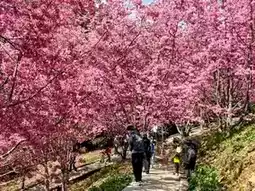The cherry blossom garden at Fushoushan Farm is in full bloom recently and has become a hit on the internet! Without further ado, come and see how powerful it is. Fushoushan Farm is located at Heping Mountain in Taichung. It covers a large area and is divided into three major areas: living area, production area, and ecological area. The pink sea of cherry blossoms is located in the living area at the entrance. You can see it as soon as you walk in. It is very close.
