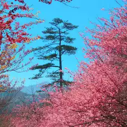 2. Around Wuling Hotel: Cherry blossoms and verdant pine trees are intertwined, one pink and one green, colliding with wonderful sparks and creating a dreamy spring scenery.