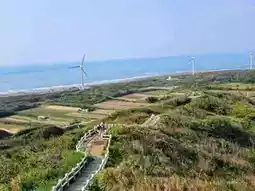 The wooden boardwalk at Gaomei Wetlands is uniquely designed, extending deep into the wetlands, allowing close observation of the wetland ecosystem and scenery. The sustainable use area at the end of the boardwalk is a great place for families to play in the water.