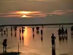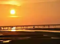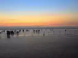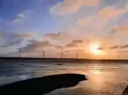 During the day, the water surface of Gaomei Wetlands is like a mirror, reflecting the blue sky and large wind turbines. At dusk, the sunset glow turns the horizon into a romantic golden color, which is incredibly beautiful.